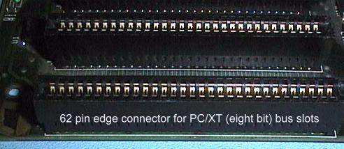 The first hardware we will look at is the system board out of an original IBM PC. The PC and PC/XT computers used the 8088 processor chip with its 16 bit internal data bus, eight bit external data bus, and 20 bit address bus. The bus connectors are called the PC/XT bus or eight bit bus.