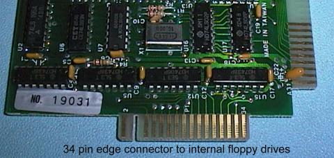 The Input/Output (I/O) functions were originally provided by individual cards. Here is an example of a floppy disk drive interface card.