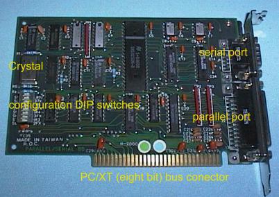 This card is an example of a card providing two I/O functions, one Serial Port and one Parallel Port.