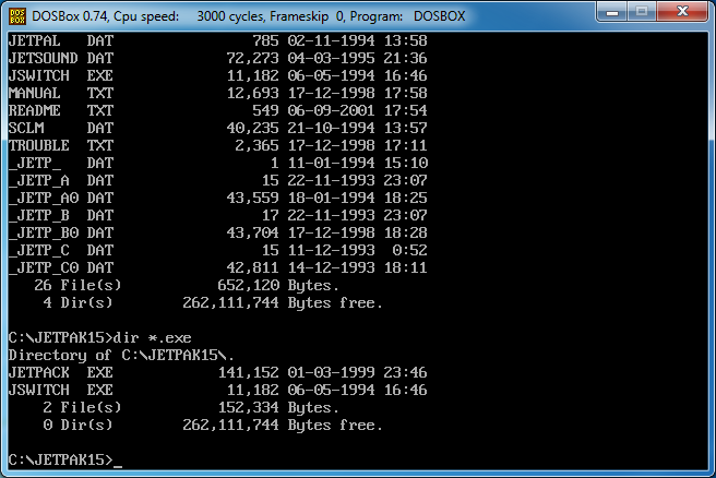 Now a new folder can be mounted as the C: drive. Once you've switched to the virtual drive you've created, you need to run the game by typing in the name of the executable file. If you already know the filename, you can type it in now. If you don't, you can use the old DOS directory command, "dir". ![]() Ack! Some games will have too many files. All programs have either a .exe or .com extension. Some games run a batch file (.bat) first, which might select some of the settings before it starts the game. These are the only three extensions you care about. You can narrow your search using "wildcards". To DOS, a question mark represents any character, so if you want to find a list of files that start with "game" and end with a letter or number, you could do a search for "game?.exe". An asterisk represents any string of any length, so if you want to search for all of the files that end with .exe, search for "*.exe". In this case there are two .exe files, but often there will only be one. JETPACK.EXE is probably the right one, so we can type in "jetpack". Because only .exe, .com and .bat files are executable, you don't have to type the .exe extension into the command line. DOS, and DOSBox, will assume that you want to run the .exe file with that name. ![]() And now you're playing Jetpack! ![]() If you're satisfied with the way the game is playing, you can switch to full screen mode by pressing Alt+Enter, and now you're playing just like on a real DOS computer! DOSBox will play most games perfectly using the default settings. In the beginning of the PC, there was only one type of PC, which used an Intel 8088 processor running at 4.77 MHz. Because there was only type of PC, the very first DOS games were designed to run at 4.77 MHz. If you try to run a game designed for the original IBM PC or XT on a faster computer, it might run way too fast. If a game is running too quickly, you can slow down DOSBox's virtual CPU by pressing Ctrl+F11. Some games that were designed to run on Pentium processors may run too slowly at the default settings. If a game is running too slowly, you can speed up DOSBox's virtual CPU by pressing Ctrl+F12. This changes the "cycle count", which you can see at the top of the interface window. In this case, I've doubled the default cycle count to 6000. You may need to go well into five digits for some games. If you're playing a game that supports SoundBlaster audio, but sound effects or music are missing, you may need to change the sound settings. Remember that weird line of numbers when you started DOSBox? What the heck is that about? Well, in the days of DOS, "set blaster" was used to configure the sound card. These settings represent the "A"ddress, "I"nterrupt (IRQ), "D"MA channel, "H"igh DMA channel, and "T"ype. These settings are fairly standard, and many games that are advanced enough to support SoundBlaster hardware can auto-detect your sound settings. Here's an example of a setup screen that allows you to change the sound settings before running the game. ![]() The Address is 220, which matches our "A220" setting. The 8-bit DMA Channel is 1, which matches "D1", and the 16-bit DMA Channel is 5, which matches "H5". The Interrupt is set to 5, but we're set up for "I7". This could prevent the sound from playing, or crash the game entirely. The Interrupt should be changed to 7. If you've forgotten, you can check the SoundBlaster settings from the command prompt by typing "set blaster". Some games will only allow certain audio settings, so if you can't change the game to match your setting, you can change your settings to match what the game expects using the powerful "config" command. The "-set" parameter of the config command can be used to change a configuration setting, and the name of the setting we want to change is "sblaster". DOSBox's internal name for the "A" variable is "sbbase", "I" is "IRQ", "D" is "DMA", and "H" is "HDMA". Now we can change any of the SoundBlaster variables, one at a time, with a command like this: config -set sblaster sbbase 220
