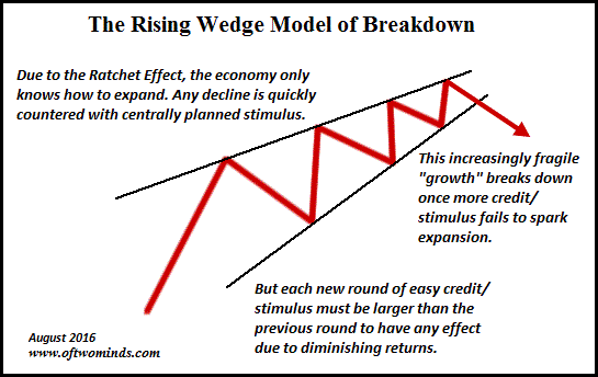 In sum, the complacent are clueless. The eventual price of substituting magical thinking and survivorship bias for actual evidence will be far higher than the complacent realize. Playing games with statistics and high finance will not limit the spread of the virus or limit its profound economic impact.