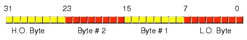 Notice that a word contains exactly two bytes. Bits 0 through 7 form the low order byte, bits 8 through 15 form the high order byte (see Figure 3.4).