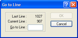 Enter the line number where you wish to jump to. This must be in the range 1 through Last Line, inclusive. Values outside of this range are ignored, but the Go to Line Dialog is not dismissed. |