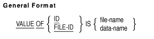 The VALUE OF ID clause specifies, replaces, or completes a file specification.