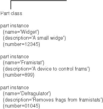The assignment instructions for Mypart A and Mypart B create two objects that are instances of the Part class. The objects are created by sending a NEW message to the Part class. The NEW message causes the INIT method to be invoked as part of object creation. The INIT method takes the three arguments you provide and makes them part of the object's own exclusive set of variables, called a variable pool. Each object has its own variable pool (name, description, and number).
